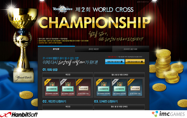 ... 개인전 우승자에게는 200만원의 상금과 우승자 훈장 아이템이 주어지며, 준우승자에게는 상금 100만원과 준우승자 훈장 아이템이 주어진다. 오는 13일부터 제 2회 '그라나도 에스파다' 월드 크로스 챔피언십 예선전 시작과 관련된 일정 및 자세한 이벤트 내용은 공식 홈페이지(ge