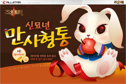 ...KTH(대표 서정수) 올스타의 NNORPG '적벽'에서 4일부터 30일까지 2011년 새해를 맞아 이벤트를 실시한다. 이번 이벤트는 2011년 신묘년(辛卯年) 토끼의 해를 맞아 ‘토끼’를 주제로 한 신년 이벤트로, '적벽' 홈페이지 내에서 진행된다. 홈페이지 곳곳에서 출현하는