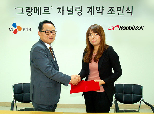 ...한빛소프트(대표 김기영)는 CJ인터넷(대표 남궁훈)과 4일 온라인 낚시게임 '그랑메르'에 대한 동시 채널링 계약을 체결했다. 이번 계약을 통해 '그랑메르'는 한빛소프트과 CJ인터넷의 게임포털 한빛온, 넷마블을 통해 서비스된다. 특히, 한빛소프트는 넷마블에서 '그랑메르'의 채
