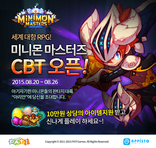 ...더불어 '서자의 서' 모드를 통해 미니몬마스터즈의 세계관을 경험해 볼 수 있는 장을 마련하는 등 시나리오도 강화 시켰다. 파티게임즈는 오는 26일까지 진행되는 비공개테스트를 기념해 참여자들에게 정식 출시 후 수정(캐시) 100개를 지원하며, 공식카페와 인게임 공지에 마련된 설문지
