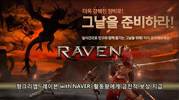 ... 이번 이벤트는 '게시판에서 활동만 해도 밥알이!'로 '레이븐 헝그리앱' 커뮤니티에 이벤트 기간 동안 작성한 '게시글'과 '댓글'을 통한 활동량 순위를 산정하여 추첨을 통해 헝그리앱 내에서 현금처럼 사용할 수 있는 밥알 포인트를 지급한다. 본 이벤트는 7월 29일까지 진행되며