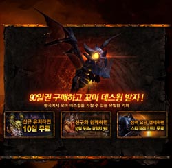 ... 먼저, 꼬마 데스윙 애완동물은 이번 프로모션을 통해서만 얻을 수 있고 게임 내 위업을 달성할 수 있으며 20일부터 2011년 1월 31일까지 90일 정액 요금 구매자를 대상으로 진행된다. 신규 회원 10일 무료 이용권은 주민등록번호 기준 최초로 '와우' 계정을 30일 이내