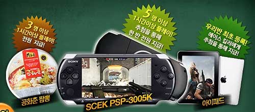 ... 3명 이상의 학생이 1시간 이상 즐기면 플레이 한 전원에게 공화춘 짬뽕 기프티콘을 발송하며, 5명 이상의 학생이 1시간 이상 즐기면 추첨을 통해 한 반 전원에게 PSP를 지급한다. 이와 별도로 우리 반을 최초로 등록한 유저(에이스 킬러) 중에서 추첨을 통해 아이패드도 지급할 예