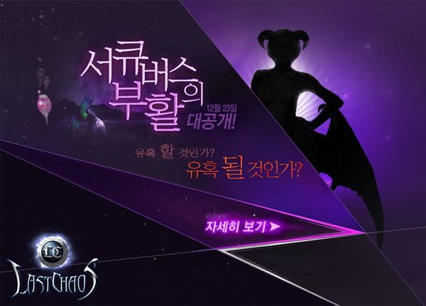 ... '라스트카오스'는 이번 서큐버스의 부활 업데이트를 기다리는 고객들에게 30여종의 신규 스킬과 캐릭터 외형 추가, 강력한 몬스터를 내 편으로 사용할 수 있는 용병시스템 등 업데이트 내용 몇 가지를 미리 공개해 유저들의 궁금증을 더하고 있다. 또, 티저 페이지에서는 서큐버스가