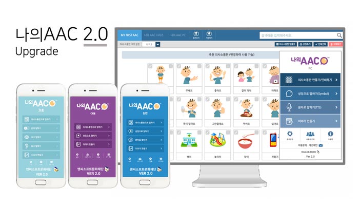 ...0’ 버전을 구글 플레이와 앱 스토어에서 무료 보급 시작했다고 30일 밝혔다. 보완대체의사소통(AAC) 프로그램은 뇌성마비, 자폐성 발달장애, 지적 장애, 중복감각 장애, 청각 장애, 말운동 장애 등 크고 작은 의사소통장애로 자신의 의견을 제대로 표현하지 못하는 사람들에게
