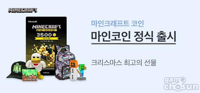 ... 일부 굿즈 제품의 경우에는 크리스마스 시즌 등을 맞이해 선물용으로 기획해 특별 할인가로 판매된다. 스페셜 이벤트로 ‘마인코인 한국 리테일 공식 론칭 이벤트’도 함께 진행된다. 마인코인은 마인크래프트 ‘마켓플레이스(상점)’에서 스킨, 텍스처 팩, 매쉬업 팩, 어드밴처 맵, 미니