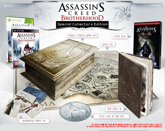 ...인트라링스(대표 배상찬)는 PS3 및 XBOX360용 암살 액션 어드벤쳐 '어쌔신크리드: 브라더후드'의 예약 판매를 6일부터 오는 9일까지 진행한다. 10일 정식 발매될 예정인 이 게임의 한정판은 코덱스북 및 로마의 지도, 어쌔신크리드 리니지필름 DVD, 보너스DVD, OST,