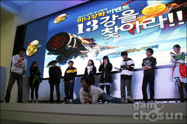 ... 이번 이벤트에는 인기 개그맨 장동민, 유상무가 메인 MC로 활약했으며 7대 던파걸 1기 민주희도 참석해 자리를 빛냈다. ↑ 이번 이벤트는 던파 유저들의 댄스로 최종 4인을 선발했다. ↑ 최종 4인의 강화기 뽑기에서 +13 강화권이 한명 당첨됐다
