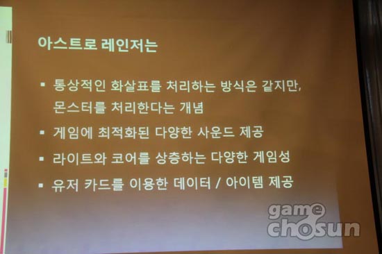 ... 굿맨엔터테이먼트(대표 이수영)의 송명석 과장은 부산 벡스코에서 열린 아스트로레인저 인터뷰에서자사의 게임에 대한 설명과향후 계획을 밝혔다. 2006년 온라인으로 발표돼 다양한 캐릭터와 개성적인 음악으로 사랑 받은 '아스트로레인저'는 개성이 강해서 온라인보다는 아케이드쪽에 더 어울