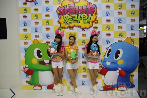 ... 부산 벡스코에서 열리고 있는 국내 최대 게임전시회 지스타2010에서 네오위즈게임즈의 '퍼즐버블온라인' 의 신규 트레일러 영상이 19일 공개됐다. 이번 영상에서는 아케이드 게임 '퍼즐버블'의 오리지널 캐릭터가 등장해 게임의 캐주얼성을 강조했고, 특유의 화려한 색감을 선보였다.