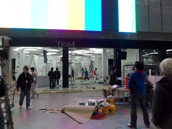 ... NHN 한게임의 메인을 맡은 '테라' 부스도 서둘러 부스 완공을 진행하고 있다. 총 2층으로 나뉜 이번 부스는 체험중심으로 꾸며질 예정이다. 1층은 40석 이상의 일반 체험대로 꾸며지며 2층은 15석 이상의 파티플레이 체험대로 꾸며진다