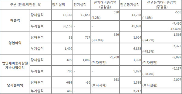 ...2% 증가했으며, 영업 이익은 87. 9% 감소한 수치이다. 이번 분기 영업 이익 하락은 '오디션2'와 '패온라인'의 런칭 마케팅 비용 증가와 라이선스 상각이 반영된 것이며, 당기 순이익은 환율 하락 등의 이유로 -6억 9000만 원을 나타냈다