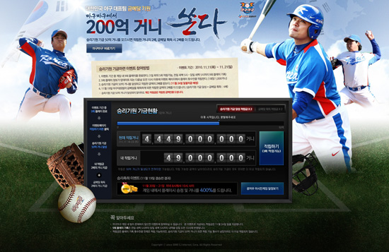 ...CJ인터넷(대표 남궁훈)의 게임포털 넷마블에서 서비스하고 애니파크(대표 김홍규)가 개발한 야구게임 '마구마구'가 2010 광저우 아시안게임 대한민국 야구 국가대표팀의 금메달을 기원하는 이벤트를 실시한다. 11일부터 21일까지 진행되는 이번 이벤트는 유저들이 게임을 진행하면서 게임