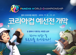 ...co. kr)에서 우리나라 최강 게이머를 가리기 위해 개최하는 제 1회 팡야 코리아 컵 예선전을 시작한다고 8일 밝혔다. 이 회사는 지난달 31일까지 코리아 컵 참가 신청을 한 유저들을 대상으로 오는 21일까지 별도로 개설된 대회 전용 서버를 통해 온라인 예선을 진행한다