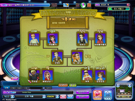 ... 가족을 만들고 싶은 유저는 상점에서 가계도 아이템을 구매, 유저의 동의를 얻어 배우자, 부모 등의 가족을 추가해 가계도를 만들 수 있다. 일단 가계도를 형성하게 되면 가족명과 가훈을 만들어 가문을 자랑할 수 있고, 친구에서 나아가 가상의 가’간의 더욱 돈독해진 유대감과 소속감을
