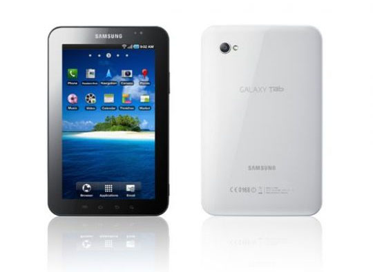 ... 갤럭시탭은 7인치의 LCD 디스플레이에 11. 98mm의 두께와 386g의 무게로 애플사의 아이패드의 9. 7인치 디스플레이와 730g무게보다 한 손에 들기에 무리가 없다는 평을 받았으며, 구글의 안드로이드 2