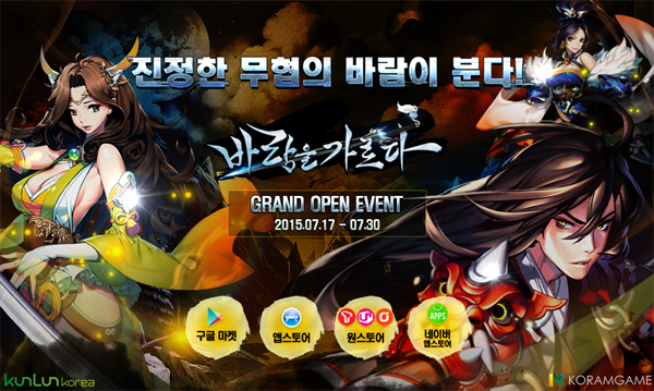 ... 이 게임은구글 플레이 스토어를 비롯해 애플 앱스토어, 원스토어(티스토어, U+스토어, 올레마켓) 등에서 무료로 다운로드 받을 수 있다. 쿤룬코리아는 '바람을 가르다' 출시를 기념해 17일부터 30일까지 2주 동안 다양한 이벤트를 실시한다. 먼저, 이벤트 페이지에 게재된 미