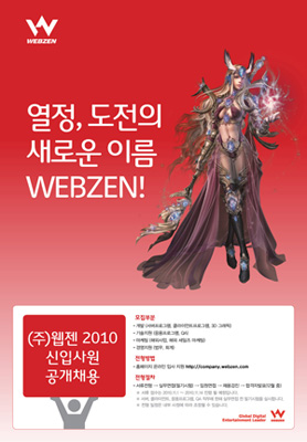 ...채용분야는 서버프로그램/ 클라이언트/ 3D 그래픽/ 응용프로그램/ QA 등 게임 개발 및 기술 지원 부문과 해외사업/ 해외세일즈 등 마케팅 부문, 법무/ 회계 등 경영지원부문으로 총 4개 부문이며, 4년제 학사 이상 취득자 중 2011년 2월 졸업을 앞두었거나, 경력 1년 미만의