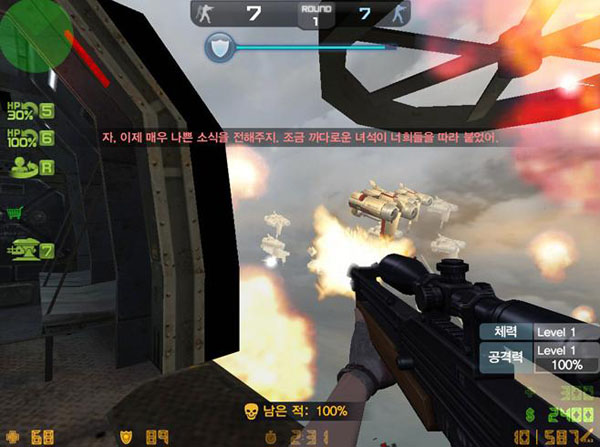 ... 첫 번째 라운드에서는 플레이어가 헬리콥터에 탑승한 상태에서 시작한다. 끝없이 추격해오는 무인요격기 드론을 상대로 헬리콥터를 지켜내 다음 라운드인 열차까지 무사히 다다르면 1라운드를 완료하게 된다. 질주하는 급행열차 안에서 시작되는 두 번째 라운드에서는 지상 적 유닛들을 제거해
