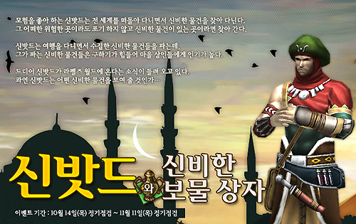 ...㈜갈라랩(대표 박승현)은 자사가 직접 개발, 서비스하는 크리처 혁명 '라펠즈'에서 가을을 맞아 11월 11일까지 신밧드와 신비한 보물상자 이벤트를 실시한다고 밝혔다. 이 이벤트는 게임내 신비한 물건을 찾아 다니는 이벤트 NPC 모험가 신밧드에게 몬스터 사냥시 획득하게 되는 보석