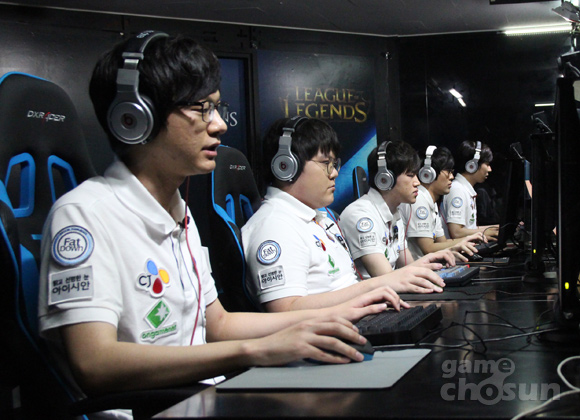 ... 파랑 진영에 위치한 CJ는 애니-빅토르-알리스타를 제외했고, 빨강 진영에 자리한 나진은 칼리스타-라이즈-그라가스를 금지했다. 또 CJ는 (아지르)-(쓰레쉬, 렉사이)-(코그모, 쉔)을 선택했고, 나진은 (마오카이, 시비르)-(이블린, 케넨)-(이즈리얼)을 사용했다. CJ