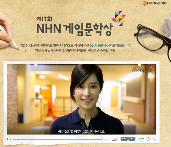 ... NHN은 수상작에 선정된 총 26개 팀을 대상으로, 오는 21일 NHN 본사에서 시상식을 진행, 총 1억원 규모의 상금과 상패를 전달할 예정이다. 또한, 이번 공모전 수상작 작가들이 게임개발사 관계자들에게 자신의 작품을 프리젠테이션 할 수 있는 장을 마련해 우수 게임 시나리오가