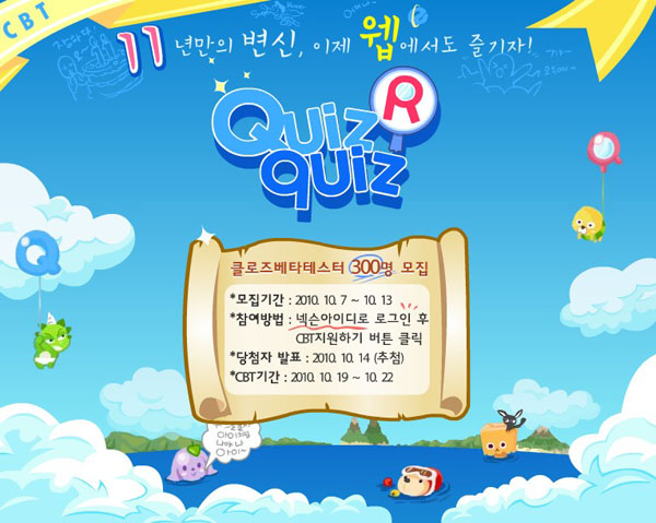 ... '퀴즈퀴즈R'은 1999년 큐플레이 런칭 당시 사용했던 이름인 '퀴즈퀴즈'에 R을 붙여 '돌아온 퀴즈퀴즈'를 의미한다. 또한 '퀴즈퀴즈R'은 별도 클라이언트 설치 없이 인터넷 환경만 제공되면 즐길 수 있는 플래시 게임으로 제작됐으며, '큐플레이'와 마찬가지로 유저들과 동시 접