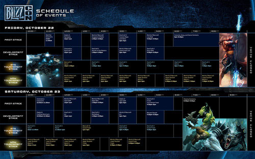 ... 이번 행사의 키노트는 '대격변'의정식 출시7주전 이라는 특성상 '와우'와 관련된 대규모 이벤트가 치뤄질 것으로 전망된다. 또한, '디아블로3'를 미리 시연해 볼수 있으며, 그에 관련된 질의응답 섹션도 준비됐다. 게임을직접 플레이 할 수 있다는 점을 통해 유저들은 2011년