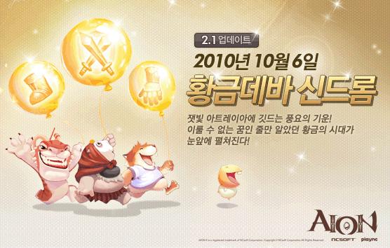 ...1 업데이트 ‘황금데바 신드롬’을 실시한다. 이번 업데이트는 게임 내 유일 등급 아이템은 노란색, 영웅 등급 아이템은 주황색인 것에 착안하여, 드랍율 상향으로 유저들이 황금데바가 되기를 바라는 소망을 담았다. 이에 업데이트 첫 번째 단계로 게임 내의 모든 인스턴스 던전과 필드의