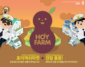 ...소설네트워크게임 '호이팜'이 17일부터 신규 아이템을 선보이며 상용화에 돌입한다. ㈜ JCE (대표 송인수)의 소셜네트워크게임(SNG)인 '호이팜'은 싸이월드 일촌과 네이트온 메신져 친구들과 함께 즐기는 SNG로, 자신만의 아바타, 다양한 동식물, 장식아이템으로 농장, 동물원,