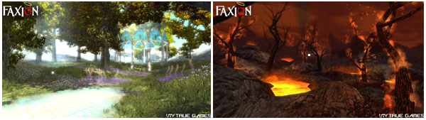 ... 게임 내 주요 지점을 점령하면, 상대 진영까지 지배함은 물론 엄청난 보상이 주어진다. 림보 세계의 각 지역은 누가 지배하고 있느냐에 따라 그 지배세력에 맞추어 환경이 변화된다. ↑천국과 지옥으로 변하는 환경 트루게임즈가 처음 독자적으로 개발한 '팍시온'은 선과 악의 대립에 중