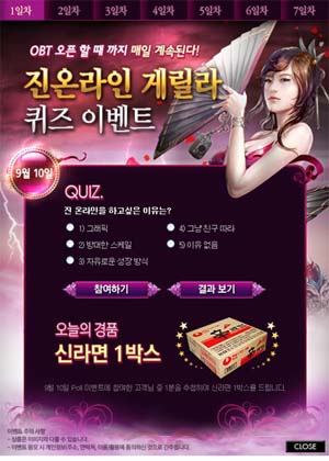 ... 크로노스 소드, 하얀섬2, 검은방3, EA프로야구2010, 모노폴리 Here and Now 등을 만나볼 수 있으며 선착순으로 다운받는 500명에게는 100% 요플레 기프티콘을 증정한다. 또한 추첨을 통하여 명품 한우세트(1명), 백화점 상품권(5만원권, 3명) 등 한가위 맞이