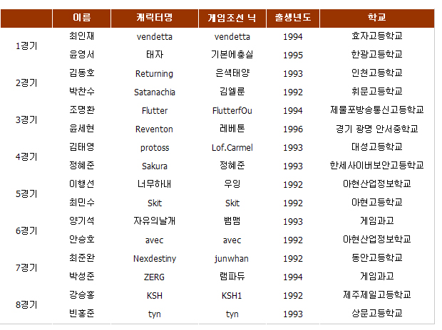 ... '리쌍'이라 불리는 최고의 플레이어끼리의 대결인 만큼 이날 결승전에서는 고도의 심리전을 바탕으로 한 박진감 넘치는 경기가 펼쳐졌다. 이영호는 2경기를 제외하고 1,3,4 경기에서 승리를 거두며 우승을 차지했다. 1경기에서는 드론을 잃으며 불리한 출발을 한 이제동은 다수의