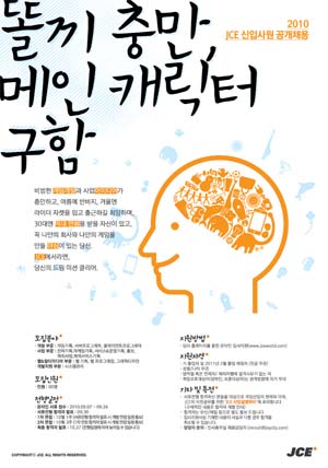 ... 이번 2010 JCE 신입사원 공개채용에 지원을 희망하는 게임인재는 JCE 홈페이지(www. jceworld. com)을 통해 9월 24일까지 입사지원서를 제출하면 된다
