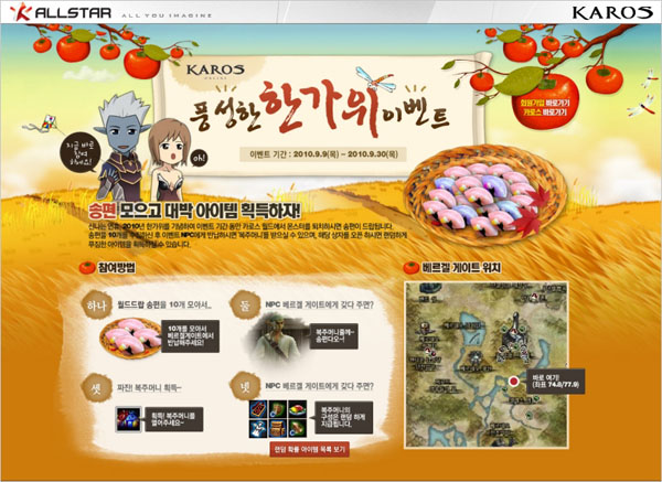 ...co. kr)의 유저를 대상으로 추석 맞이 이벤트를 진행한다. 첫 번째 이벤트로는 유저들이 선호하는 캐쉬 아이템을 한가위 패키지라는 이름으로 묶음 판매를 한다