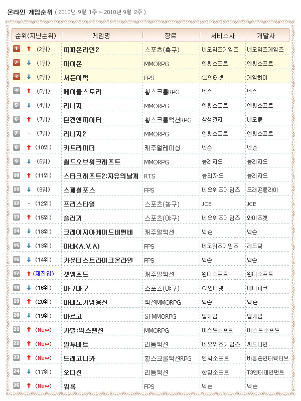 ... 요즈음 '피파온라인2(이하 피온2)'는 원정대 어뷰징 이야기로 게임 속이 시끌시끌하지만 순위에서는 긍정적인 영향이 미쳤습니다. 1위를 차지했으니 말이죠. 멀리서 멍하니 구경하던 '아이온'은 '피온2'에 밀려 순위를 놓치고 말았습니다