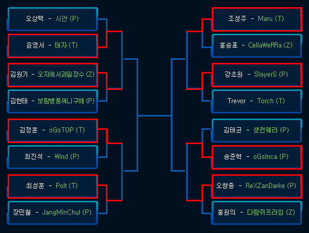 ... A조에서는 베타시절부터 각종 대회를 석권하며 두각을 보이며 이번 대회 우승후보로 꼽히고 있는 곽한얼 선수가 가볍게 2대0으로 상대를 제압하며 32강행을 확정했고 외국인선수로는 '스타1' 시절 북미 최강자로 불리던 그렉필즈가 32강에 안착했다. B조에서는' 제4종족'이라는 별