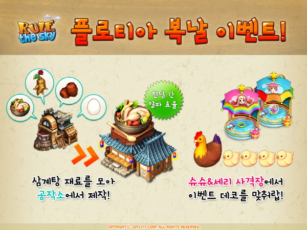 ... 또한, 복날 분위기를 느낄 수 있는 데코 아이템 '꼬끼오 닭'과 '병아리 떼'가 슈슈와 세리의 사격장에 추가됐다. 더불어 장마를 모티브로 제작된 신규 건물 '번개구름 관측소'를 출시하고, 이를 기념해 해당 건물을 획득하는 유저 전원을 대상으로 최대 '100스타(게임캐시)'가