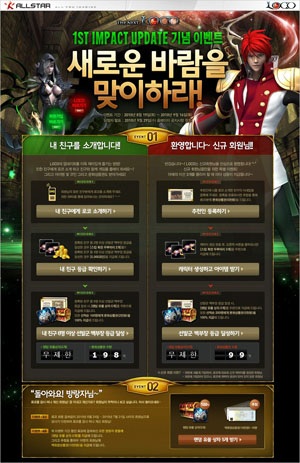 ... KTH의 게임사업본부 김정민 PM은 "앞으로 진행될 ‘1st IMPACT’에는 더욱 많은 것들이 준비되어 있으니, 기대해도 좋다”고 말했다. 이와 함께 ‘로코’는내달 16일까지 친구에게 게임을 소개하는 '새로운 바람을 맞이하라'라는 이벤트를 실시해 문화상품권과 게임머니 등을