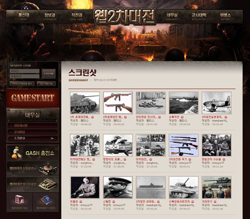 ... 특히, '웹2차대전 폭풍전야'를 통해 시작된 역사의 흔적을 찾아 스크린샷을 올리는 이벤트는 시작한지 채 일주일이 되기도 전에 약 600여종 이상의 많은 자료가 모여 제2차 세계대전의 사진들을 한 눈에 볼 수 있다. 홈페이지 내 스크린샷 페이지는 ‘미군의 B-29’’전함 비스마르