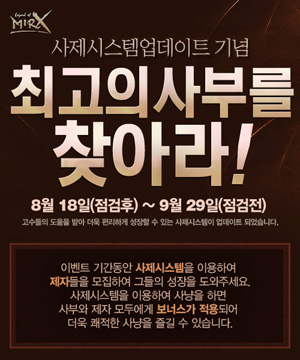 ...게임 레벨 30이 넘는 이용자는 사부의 자격을 갖게 되며, 캐릭터 정보창을 통해 최대 5명의 제자를 영입할 수 있다. 사부가 되면 제자의 접속과 레벨업, 출사에 따른 점수가 누적되어 사부의 등급이 매겨지는데, 이에 따라 순위가 집계 되어 명성은 물론 다양한 혜택을 받게 된다.