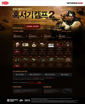 ...이번 이벤트에서는 매일 게임을 한판 이상 즐기면 획득할 수 있는 캠프 수료증을 모아 자신이 원하는 경품이나 아이템에 응모하면 선물을 받을 수 있다. 총 888명에게 혜택이 주어지는 이벤트 경품은 스마트폰(갤럭시S), LCD 모니터(LG 플래트론), 전자사전(아이리버), 이어폰(오