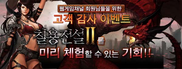 ... 이번 이벤트에 참가하는 모든 유저들은 5배 증가한 사냥속도와 건설속도, 연구속도, 유닛 생산속도 3배, 경험치 더블포인트 2배, 초기자원 2배, 초기금화 4배 등 상향 조정된 <칠용전설2>의 게임플레이를 체험할 수 있다. <칠용전설2>는 국내에 웹게임 열