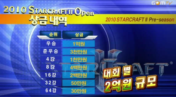 ... ▶ 2010년하반기 대회 일정 '스타2' 출시 이후 첫 정식 대회는 올해 모두 4개가 진행된다. 먼저, 오는 9월부터 11월까지 매달 세 차례에 걸쳐 <스타2 오픈 대회>가 개최된다. 이 대회는 프로와 아마추어 내외국인 구별없이 만 12세이상의 배틀넷 계정 소