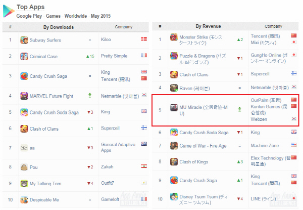 ... 한국 구글플레이스토어 매출 순위에서는 지난 5월 1위에 오른 후 현재까지 2위를 지키며 매출순위 상위권을 유지하고 있다. 웹젠은 출시 후 첫 대규모 콘텐츠 업데이트와 함께 이벤트를 펼치면서 다시 한번 순위 상승을 노리고 있으며, 7월 중에는 iOS(애플 앱스토어)다운로드 서비