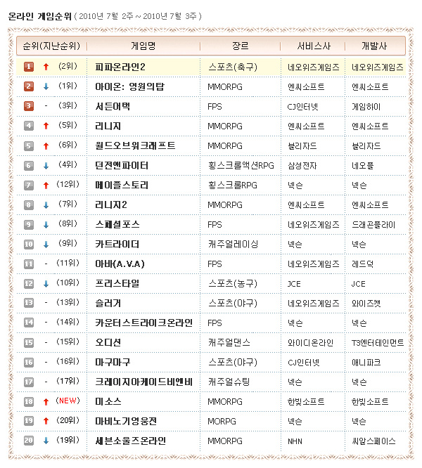 ... 이번주 게임순위를 살펴보면 지난주와는 정반대의 양상입니다. 지난주는 방학을 앞두고 대부분의 게임이 마치 숨고르기를 하듯 정체된 모습이었다면 이번주에는 순위권내 대부분의 게임들이 자리 이동을 기록했습니다. 우선 금주 순위 경쟁에서 가장 두각을 나타낸 게임은 역시 신작인 '