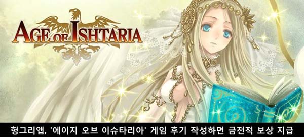 ... 이번 이벤트는 '에이지 오브 이슈타리아 게임 후기 이벤트!'로 '에이지 오브 이슈타리아 헝그리앱' 커뮤니티에 이벤트 기간 동안 게임을 진행한 후 간략한 후기를 작성하면 추첨을 통해 헝그리앱 내에서 현금처럼 사용할 수 있는 밥알 포인트를 지급한다. 본 이벤트는 7월 12일