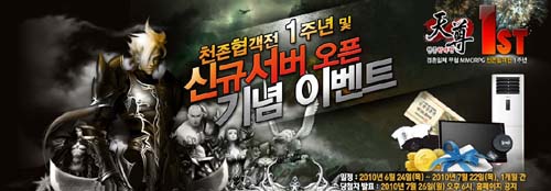 ...co. kr)는 게임 서비스 1주년을 기념해 신규서버를 오픈하고 에어컨, LCD 모니터, USB 메모리, 문화상품권, 게임 아이템 등 푸짐한 경품을 제공하는 이벤트를 진행한다고 25일 밝혔다. 먼저오는 7월 8일까지 게임에 접속하면 경험치 20%와 영혼치 50%를 추가로 획득할