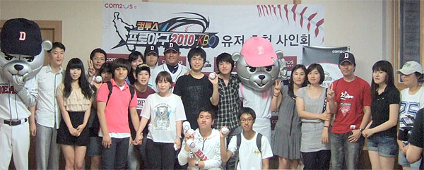 ... 이날 행사에는 사전에 온라인 신청을 통해 당첨된 20여 명의 ‘컴투스프로야구2010-KBO’ 게이머들이 참가했다. 참가자들은 질문 시간을 통해 최준석 선수에게 야구와 선수 개인적인 이야기들을 듣고, 직접 준비해 온 여러 가지 야구용품에 사인을 받으며 기념촬영을 하는 등 즐거운