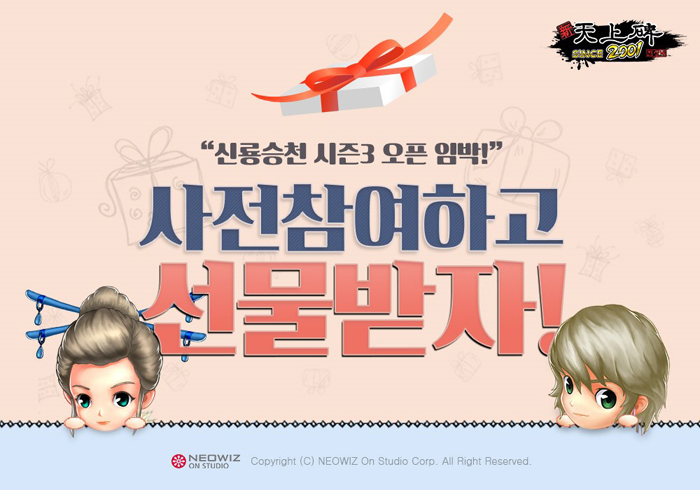 ... ‘신룡승천’ 서버 오픈을 앞두고 진행되는 이번 이벤트는 오는 11월 8일(수) 오후 6시까지 이어진다. 참여를 희망하는 이용자는 계정을 선택해 로그인 한 후 이벤트 페이지 하단의 사전 참여 신청하기 버튼을 누르면 된다. 사전 신청을 완료하면 이용자의 기존 서버